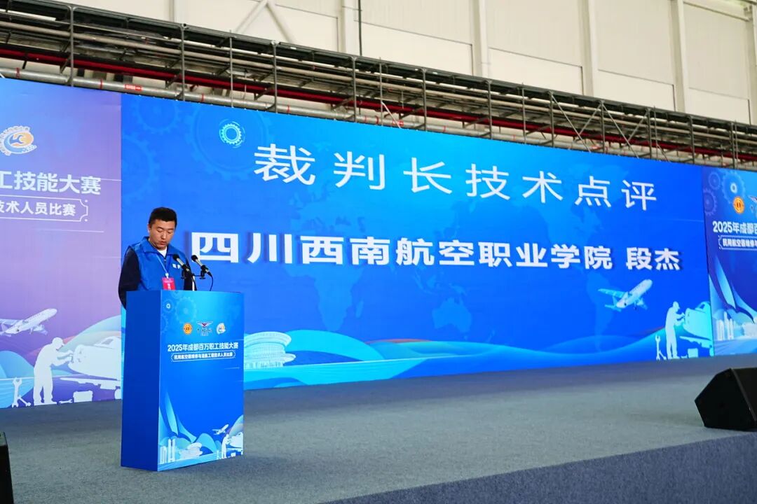 本次大赛由成都市总工会、成都市人力资源和社会保障局、成都市双流区人民政府联合主办,赛事规格与产业贴合度均创区域同类赛事新高。我院147培训中心接到邀请后,高度重视,选派了在飞机维修、电子电气、航空结构等领域具有丰富理论知识和一线实践经验的骨干教师组成执裁团队。其中段杰老师成功担任本次大赛裁判长。