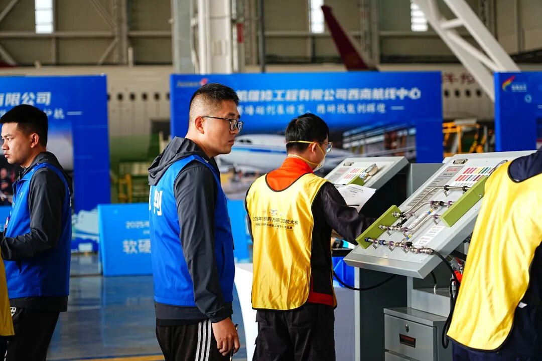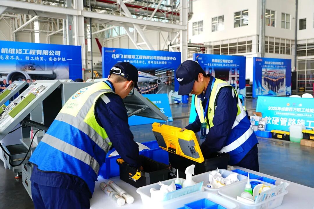 近日,2025年成都市百万职工技能大赛民用航空器维修与适航工程技术人员职业技能大赛成功举办。我院147培训中心应大赛组委会邀请,派出11名专业教师担任裁判工作,同时组织63名培训学员参与赛事全程保障,圆满完成各项任务,为大赛的成功举办保驾护航。