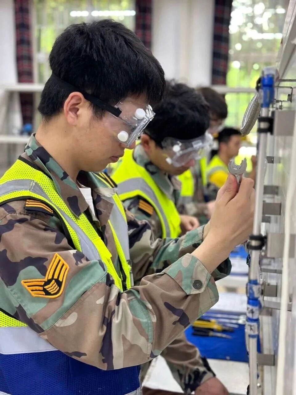 如果说教师的执裁是实力的展示,那么学生的参与则是育人成果的生动体现。本次大赛中,我院63名147培训学员深度参与到赛事服务的各个环节。他们被分配在工具管理、场地维护、流程引导、安全监督等关键岗位,承担了统计分数、人员分组、布置及恢复台架等具体工作。