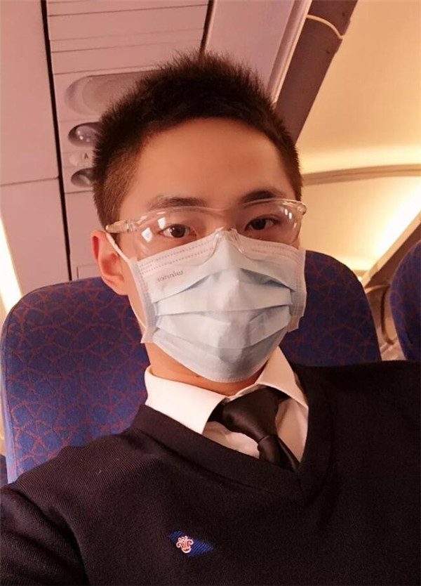 疫情期间,每一次航班都是与往常不一样的体验,也充满着未知和挑战。胡枫林说:“戴口罩飞行的第一班,目的地是普吉岛,回程出现旅客发烧,同组隔离了三个乘务员。”那次的经历,让他第一次切身地感受到了病毒的威胁,工作的艰巨,同时也让他更认清了肩上的职责。